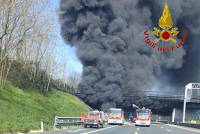 Lo spaventoso incendio di questa mattina verificatosi sull’autostrada A1, tra Caianello e Capua potrebbe avere risvolti ben più pesanti, atteso che il ponte che sovrasta l’A1 potrebbe aver riportato gravissimi danni alla struttura portante. E’ andato in fiamme, per una dinamica ancora da accertare, un rimorchio contenente materiale in plastica. L’autista del mezzo incidentato, appena ha visto le fiamme, ha subito staccato la motrice dal rimorchio. Quest’ultimo è rimasto nei pressi del ponte e ha preso fuoco. L’incendio è avvenuto sulla carreggiata in direzione sud verso Napoli, esattamente al chilometro 702+600.Lunghissime le code, alle ore 11.15 si registravano ben 17 chilometri di coda in direzione Roma. Sul posto sono intervenuti gli agenti della polizia stradale dei compartimenti Campania, Molise e Basilicata, coordinati dal generala Giuseppe Salomone e le squadre dei vigili del fuoco di Frosinone, Caserta e Napoli. La situazione più problematica è stata quella del lato sud del pilone che rischia seriamente di deformarsi e creare seri problemi per la sicurezza. Più tranquilla la situazione sul lato nord che non ha subito alcuna deformazione e quindi i tecnici sono solo in attesa del raffreddamento per poi valutare la situazione e decidere se realizzare o meno un by pass. Il ponte, infatti, si è quasi piegato in due per i danni subiti dal pilone. Intervento disperato da parte dei vigili del fuoco, che intorno alle 11.50 hanno domato le fiamme. Le auto in fila in direzione Roma solo alle 12,33 sono ripartite in direzione dell’uscita a Capua, che dista tre chilometri per fare rientro a Roma. Alle 12,40 si registravano sei km di coda tra San Vittore e Caianello. Le corsie di emergenza sono tutte occupate dalle auto. Intorno alle 14.30 è stato liberato dalle auto rimaste «intrappolate» il tratto. “Al momento – spiega Giovanni Consoli, comandante della Polstrada di Caserta – abbiamo 6-7 km di coda prima di Caianello in direzione sud, e 3-4 km prima di Capua in direzione nord. Contiamo di riaprire nel più breve tempo possibile la carreggiata nord per far proseguire la marcia in un’unica corsia, mentre per la carreggiata sud bisognerà prima attendere il parere dei tecnici sulla stabilità del punto”. “Se potrà essere puntellato, in attesa di interventi strutturali successivi, allora anche il tratto verso Napoli potrà essere riaperto. Ma passerà ancora qualche ora”, conclude Consoli. Autostrade per l’Italia ha comunicato che dalle 10.45 circa è stato chiuso il tratto tra Capua e Caianello in entrambe le direzioni. “Il provvedimento di chiusura si è reso necessario anche in carreggiata opposta a causa del fumo intenso. Le operazioni di spegnimento sono in corso ma risultano complesse e per ragioni di sicurezza è stata disposta anche la chiusura al traffico sul cavalcavia sovrapassante in viabilità ordinaria posto in corrispondenza del luogo dell’evento in competenza del Comune di Caianello. Sul luogo dell’evento, oltre al personale della Direzione 6° Tronco di Cassino, sono intervenute le pattuglie della Polizia Stradale, i Vigili del fuoco e i soccorsi meccanici. Al momento si registra 1 km di coda. Agli utenti diretti verso Napoli si consiglia di uscire a Caianello e percorrendo la SS6 Casilina rientrare in autostrada a Capua. Viceversa per chi procede in direzione opposta. Costanti aggiornamenti sulla situazione della viabilità e sui percorsi alternativi sono diramati tramite: i collegamenti “my way” in onda sul canale 501 Sky Meteo24; sulla app my way scaricabile gratuitamente dagli store di Android e Apple; su Sky TG24 HD (canali 100 e 500 di Sky) e su Sky TG24, disponibile al canale 50 del Digitale Terrestre. Sul sito autostrade.it; su RTL 102.5; su Isoradio 103.3 FM; attraverso i pannelli a messaggio variabile e sul network TV Infomoving in Area di Servizio. Per ulteriori informazioni si consiglia di chiamare il Call Center Autostrade al numero 840.04.21.21″.(Comunicato Stampa – Archiviato in #TeleradioNews © Diritti riservati all’autore)