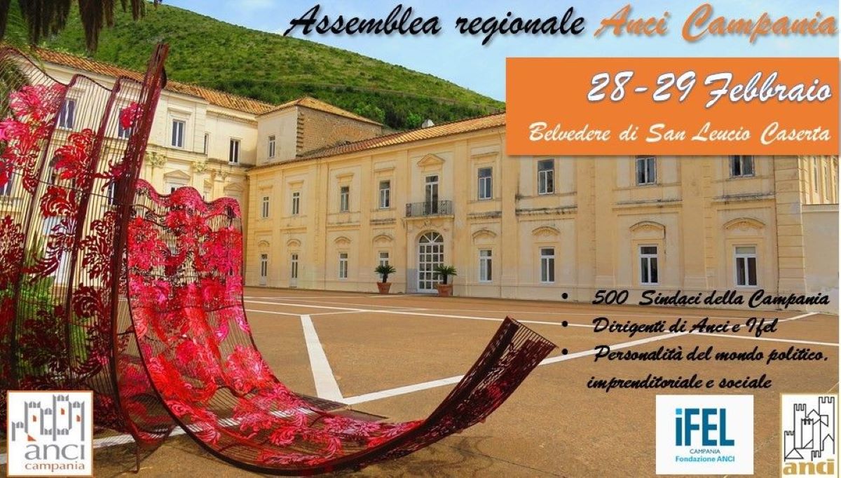 CASERTA – Riceviamo e pubblichiamo integralmente la convocazione dell’Assemblea regionale di ANCI Campania che si terrà il 28 e 29 febbraio 2020, presso il Belvedere di San Leucio di Caserta: “Cari colleghi, nei giorni 28 e 29 febbraio 2020 si terrà la Assemblea Regionale di ANCI Campania, che si svolgerà all’interno dell’incantevole sito Unesco del Belvedere di San Leucio a Caserta.