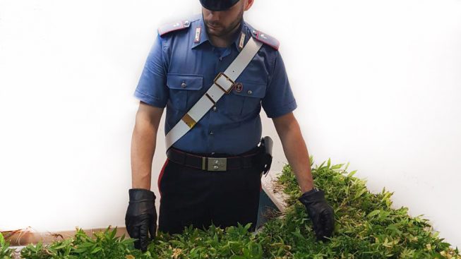 I militari dell’Arma a seguito di perquisizione domiciliare hanno rinvenuto sul terrazzo dell’abitazione n.40 gr. di marijuana contenuti all’interno di n.4 barattoli in vetro e n.120 gr. di arbusti della medesima pianta all’interno di una bacinella in plastica.